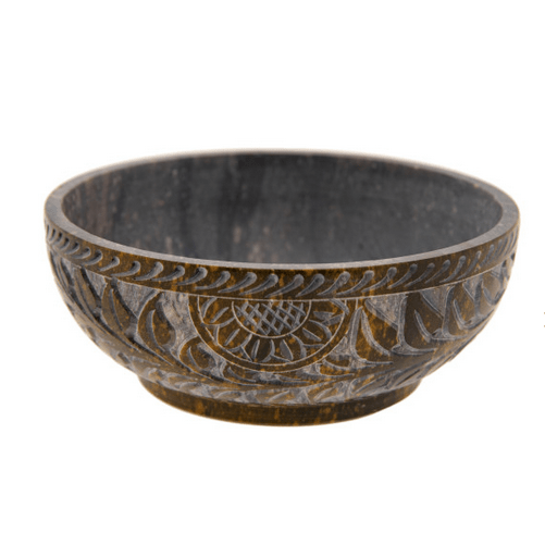 Handgefertigte Specksteinschale mit schönem Blumen- und Blütenmuster.