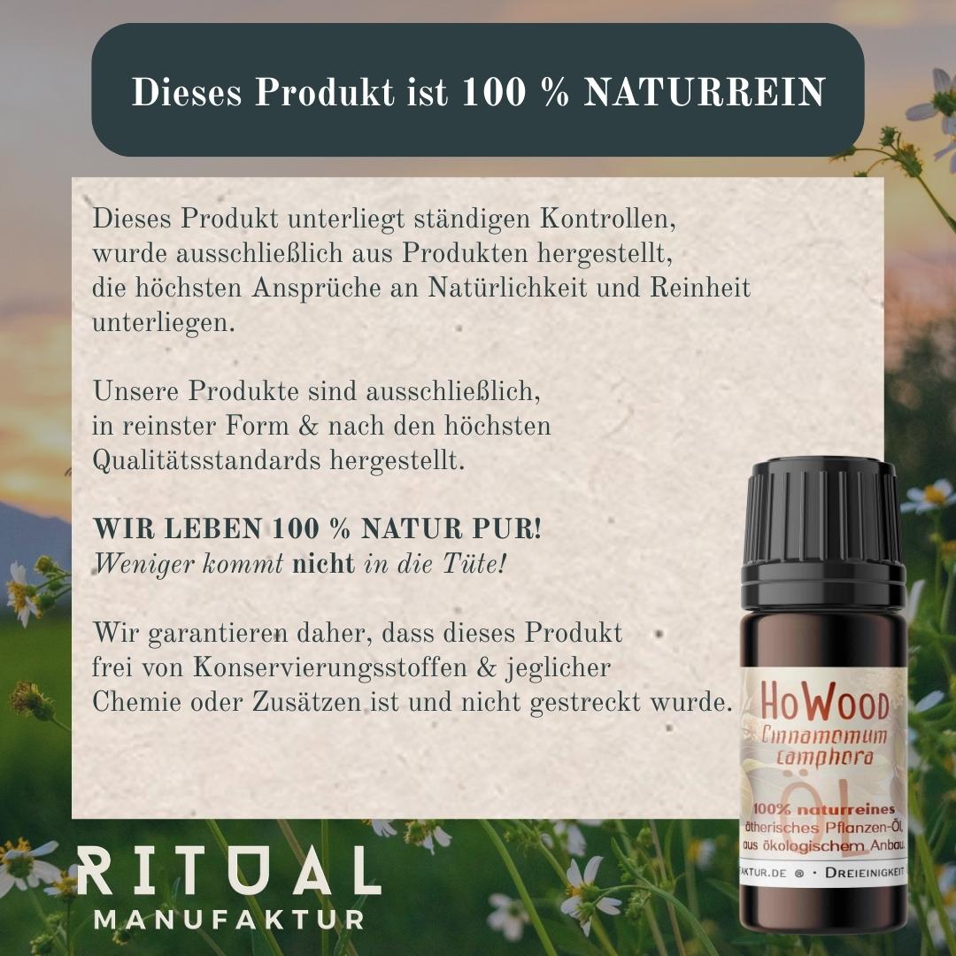 Ho-Wood ist ein Öl der Harmonie, Sanftheit und Herzöffnung. In der Aromatherapie wird es besonders für seine ausgleichende, beruhigende und zugleich herzstärkende Wirkung geschätzt und gilt als milde, nachhaltige Alternative zu Rosenholz. Sein Duft ist weich-holzig, warm, leicht blumig und fein süßlich – beruhigend für Geist und Nervensystem, zugleich öffnend und tröstend. Ho-Wood schafft eine Atmosphäre von Frieden, Ausgleich und liebevoller Präsenz.