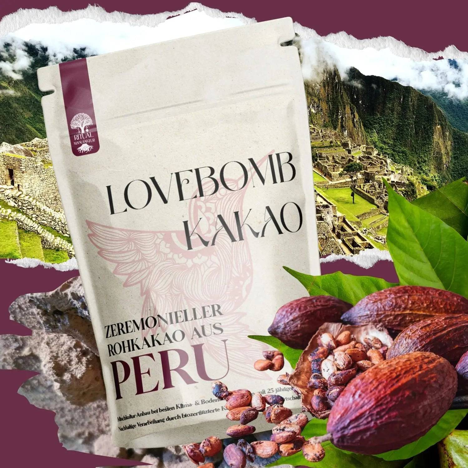 Du erhältst je 35g, zeremoniellen Rohkakao in erlesener Qualität von Kleinbauern-Kooperativen, Familienbetrieben und einfach, von ganz besonders liebevollen Menschen, mit viel Erfahrung und Naturverbundenheit, umsorgt und geerntet.