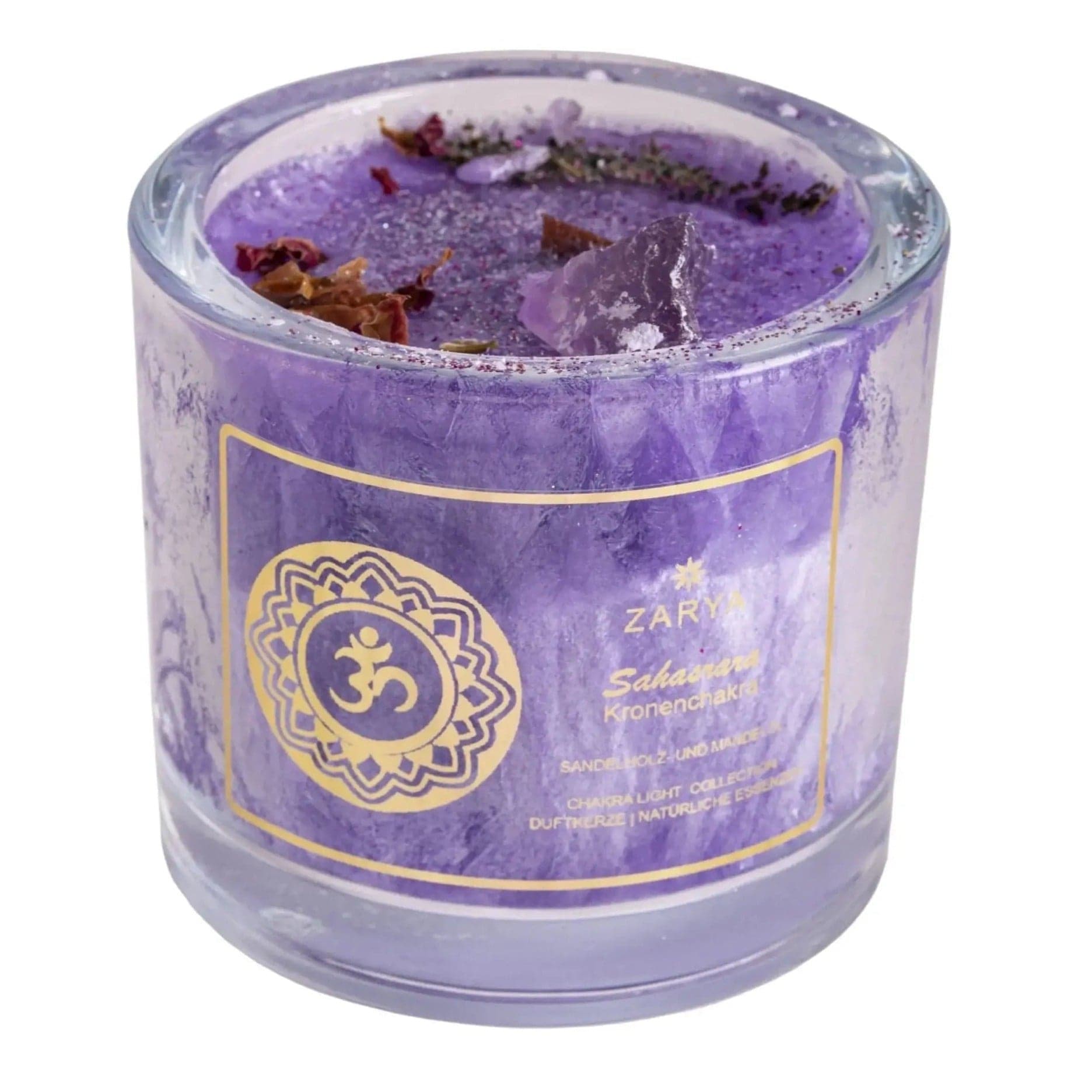 Diese hochwertige Chakra Duftkerze, ist aus 100% pflanzlichen Stearin (kbA) mit naturreinen ätherischen Ölen, echten Edelsteinen und Bio-Pflanzenmischungen, in liebevoller Handarbeit in Deutschland gefertigt.