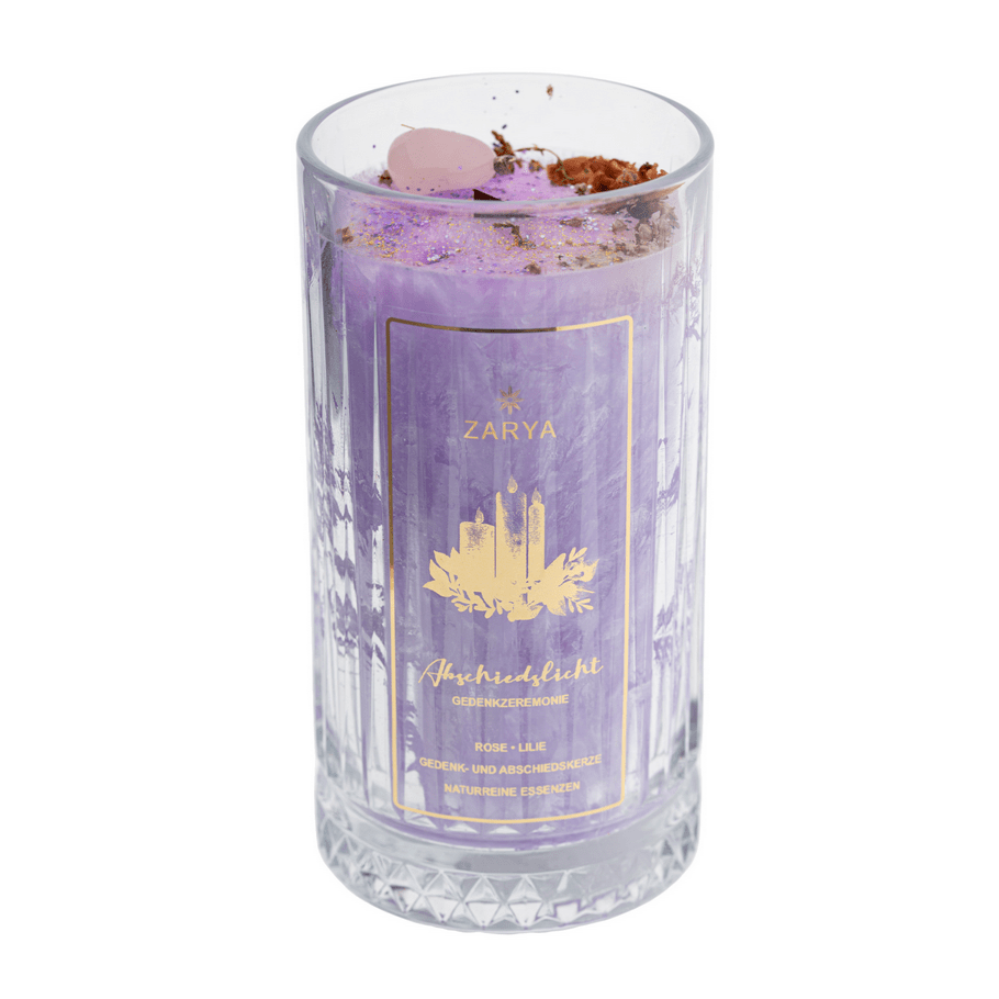 Handgegossene Kerze mit Rose, Lilie & Rosenquarz