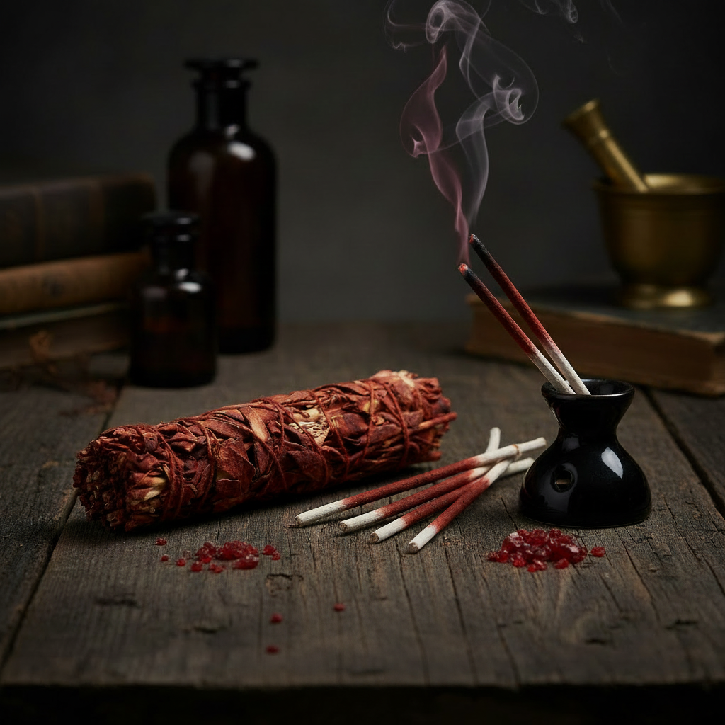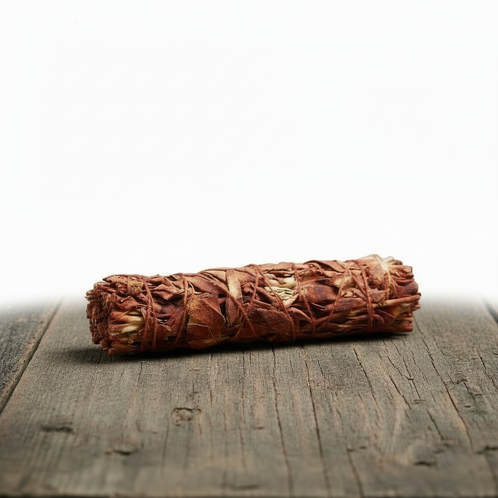 Salbei und tiefrotes Drachenblut, zwei intensiv reinigende und atmosphärisch klärende Räucherpflanzen in einem Bündel. Verbannt negative Energien und klärt den Geist. Krautige-, herbwürzige Duftnote. Der Bündel kann direkt angezündet werden.