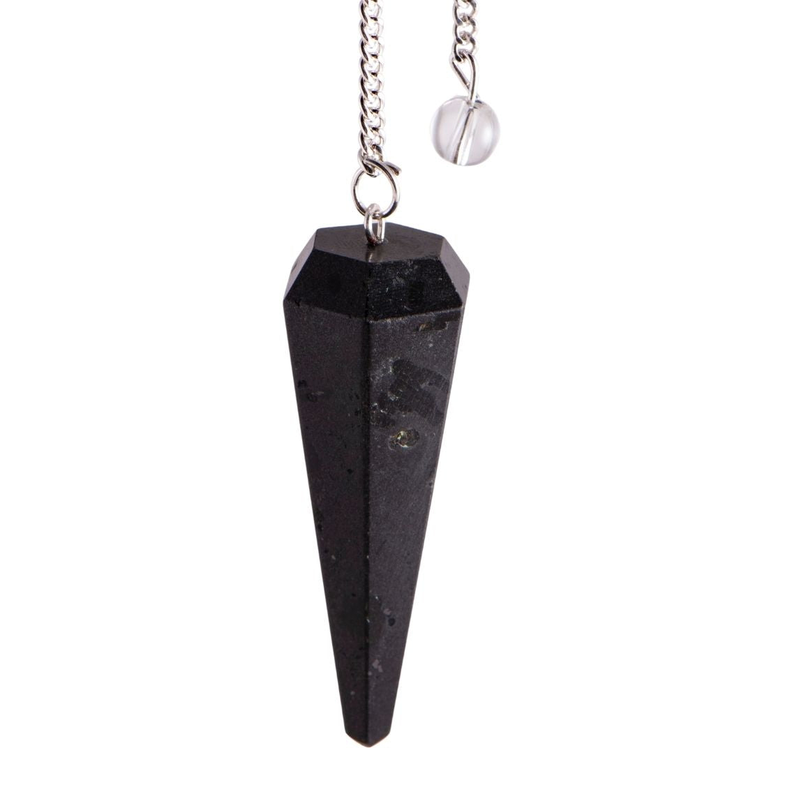 - Form: Sechskant, facettiert, mit silberfarbener Kette und Kugelende