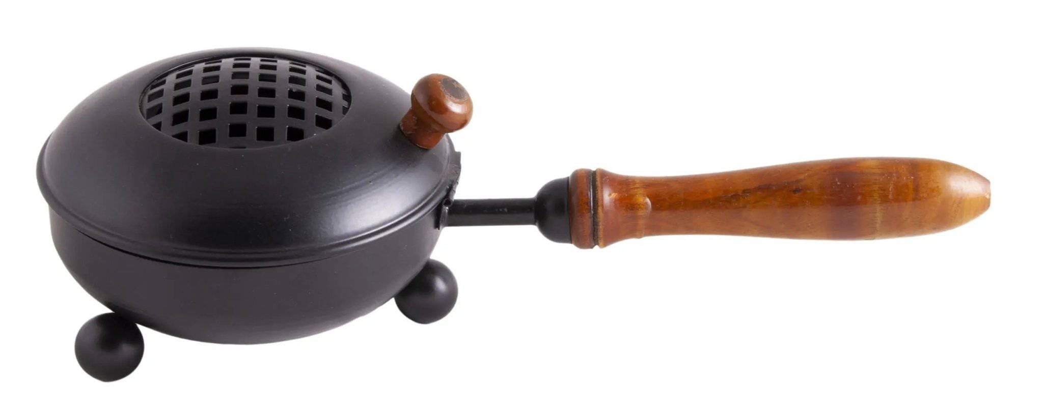 Diese Gefäße sind besonders gut geeignet für Raumund Aurareinigungen. Durch den langen Holzgriff lassen sie sich leicht in der Wohnung umhertragen. Gehen sie mit leichten Schwenkbewegungen von Raum zu Raum und räuchern sie sorgfältig die Ecken aus. Bei Aurareinigungen geht man wiederum mit leichten Schwenkbewegungen von unten nach oben um die Person herum und fächelt ihr bzw. ihm die Rauchfahnen zu.