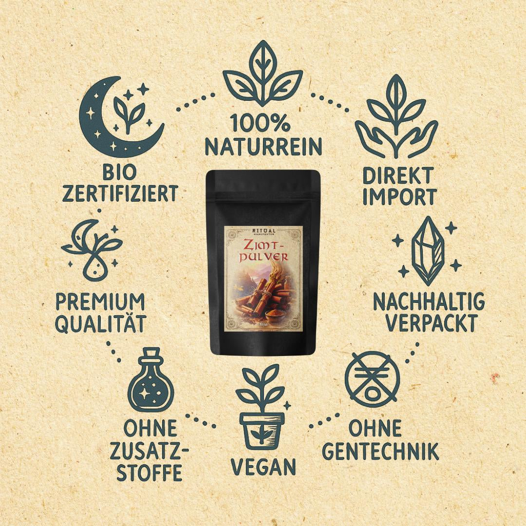 In order to achieve the best possible taste experience, the cinnamon powder is processed fresh and gentle directly before bottling. As a result, the finest cinnamon aromas develop even better. Trying is about studying.