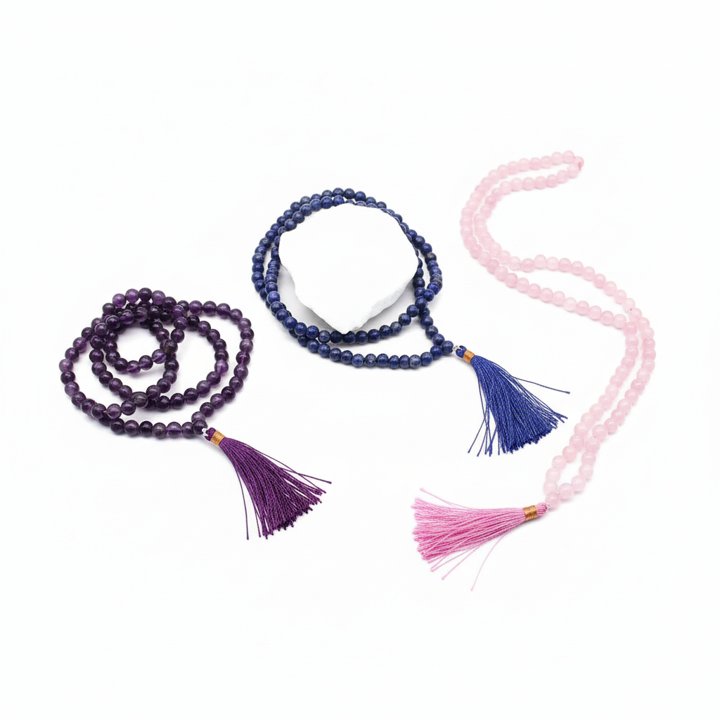 Magnesite - stands for joie de vivre, has a calming effect and makes more resilient. Rudraksha -Sie is considered a powerful protective pearl that the sky provided us for our way to earth.