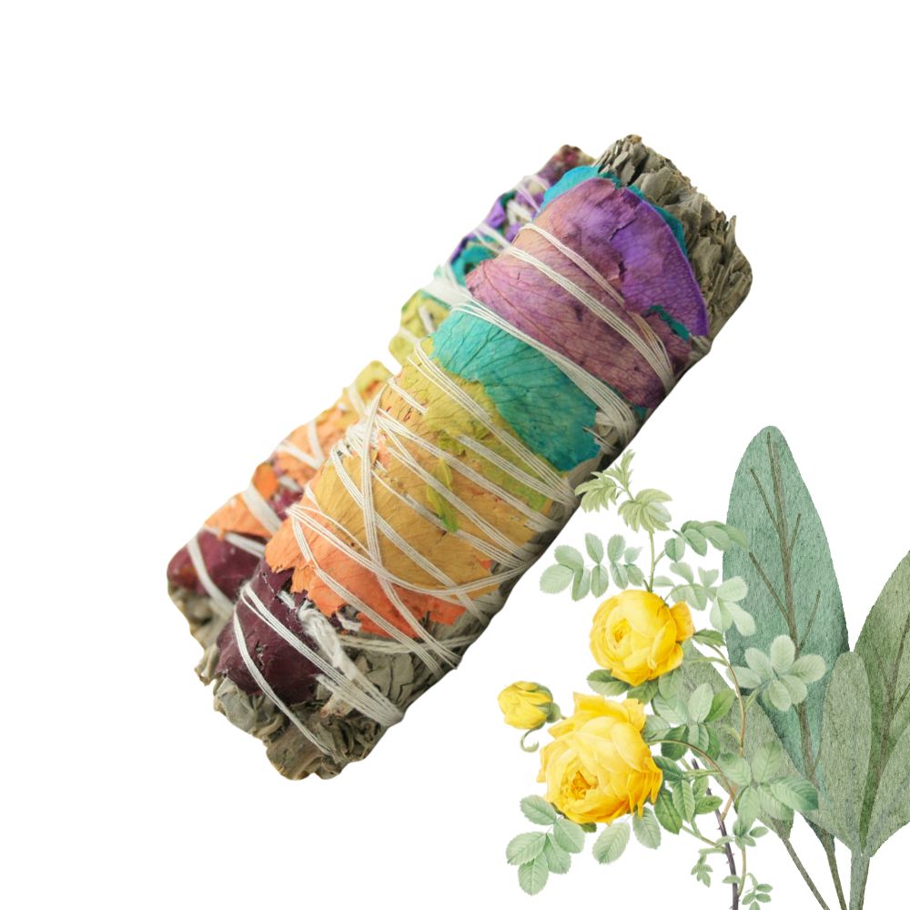 White sage is widespread among the locals of Central America that are dedicated to shamanism. The rose flamed here on behalf of love and the opening of the different chakras in all its colors.