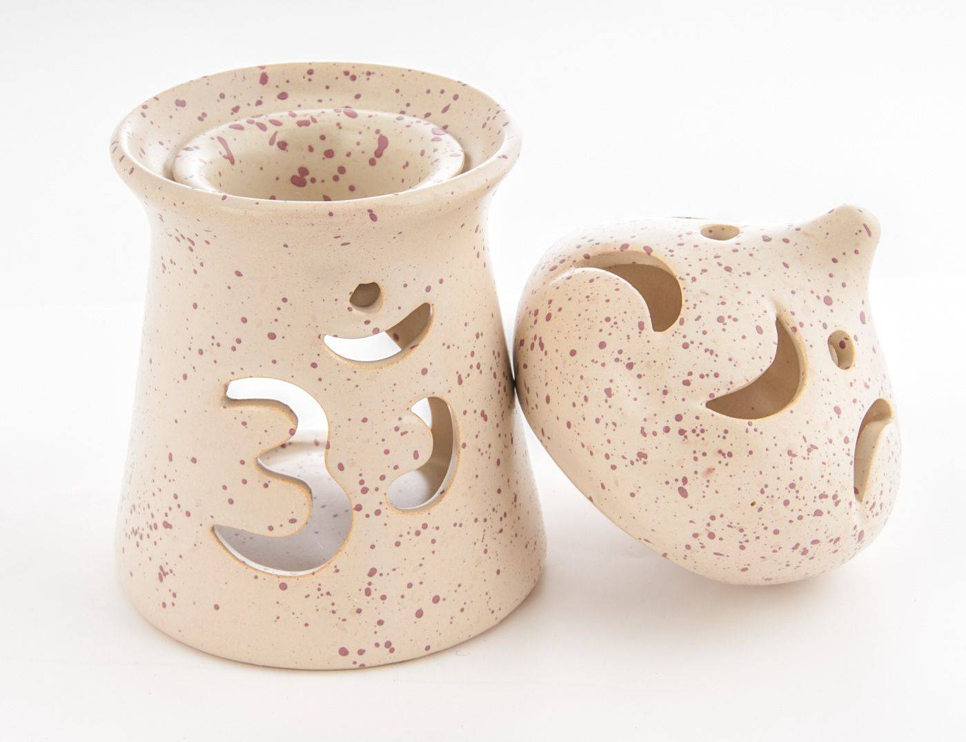Clay, height approx. 16 cm, Ø at the bottom approx. 9 cm, incense sieve Ø approx. 6 cm