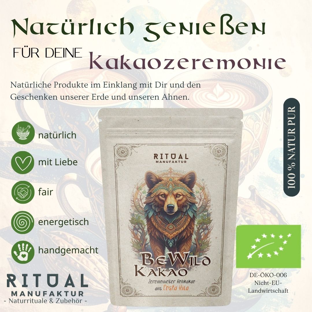 Für die Ritualmanufaktur steht nicht nur die Qualität des Kakaos im Mittelpunkt, sondern auch die Verbindung zu seinem Ursprung. Jede Tasse lässt dich spüren, was die Maya und Azteken seit Jahrtausenden ehrten: Kakao als heilige Pflanze, als Begleiter in Ritualen und als wahre „Nahrung der Götter“.
