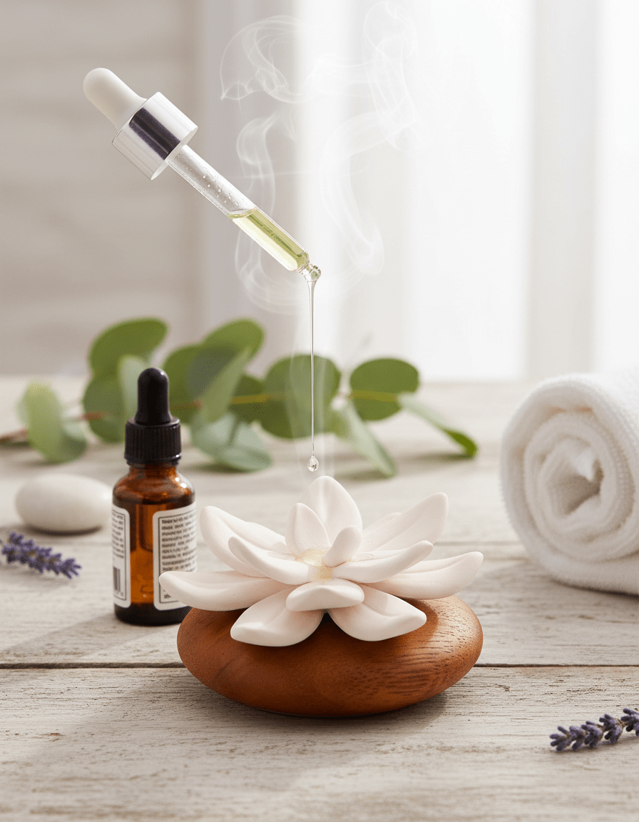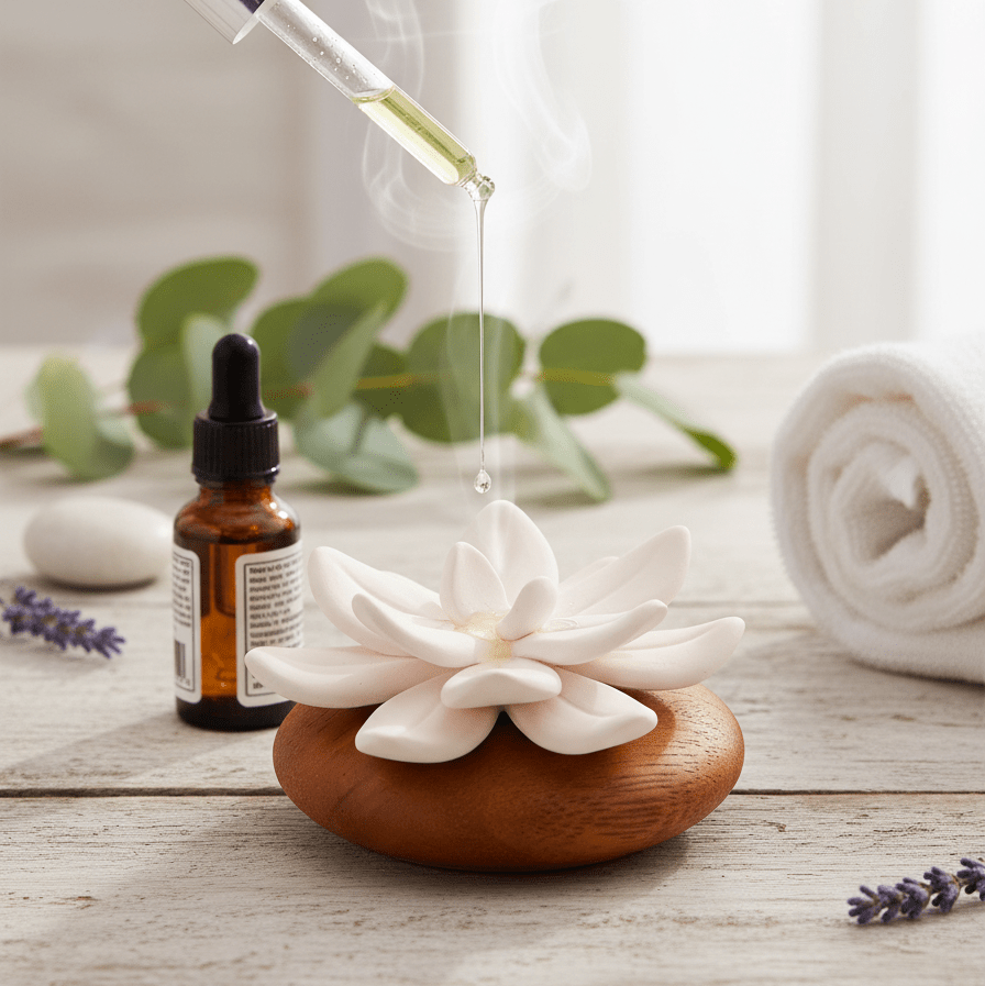 The Lotus Aura Scent Stone is made of particularly fine-pored ceramic, designed to absorb essential oils completely and long-lastingly.