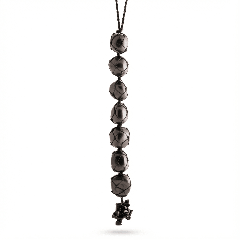 Each necklace is made from carefully selected, natural, polished shungite stones and strung on elastic – a real eye-catcher in any room, full of magic and effect.