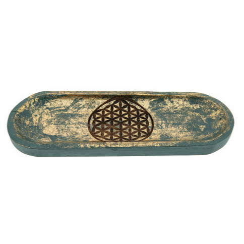 Sehr breiter und massiver Räucherstäbchenhalter mit einer wunderschönen Blume des Lebens-Verzierung.