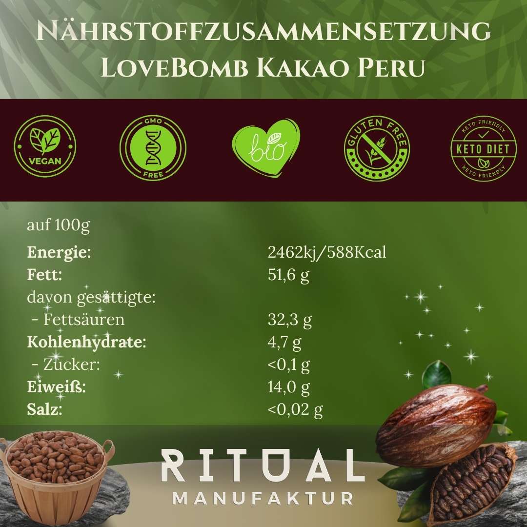 LoveBomb Bio Criollo Rohkakao aus Peru