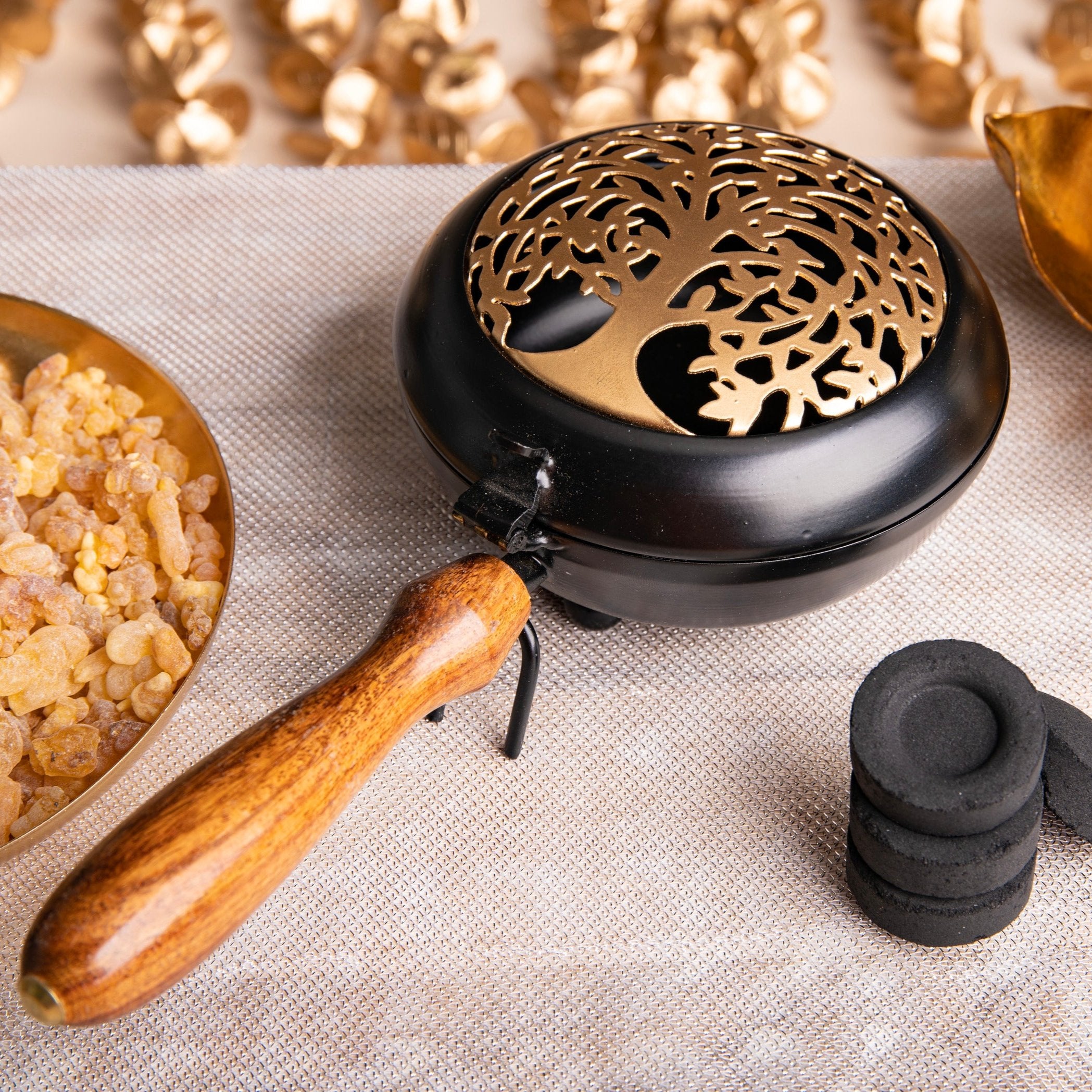 Dieses Gefäß ist besonders gut geeignet für Raum- und Aurareinigungen. Durch den langen Holzgriff lässt es sich leicht in der Wohnung umhertragen.