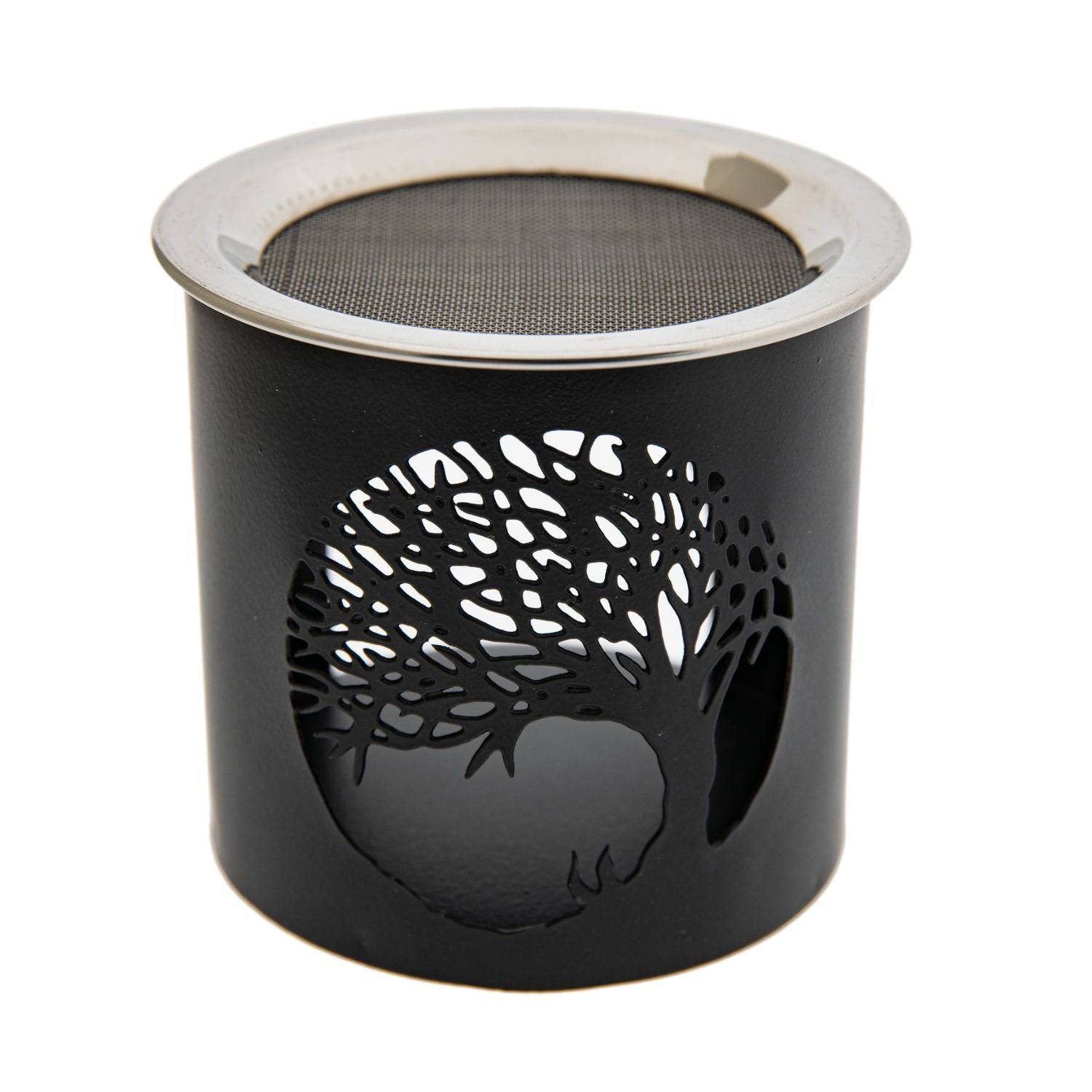 Siebgefäße sind die Alternative zum Räuchern auf Kohle. Die Harze, Kräuter und Hölzer werden einfach auf das feinmaschige Sieb gelegt. Durch die aufsteigende Hitze des Teelichts im unteren Teil des Gefäßes verglimmen die Räucherstoffe auf sanfte und langsame Weise. Eisen schwarz gepudert, Sieb Edelstahl Räucherstövchen. Lass dich von der Baumkraft des Weltenbaums in einem wunderschönen Design inspirieren.